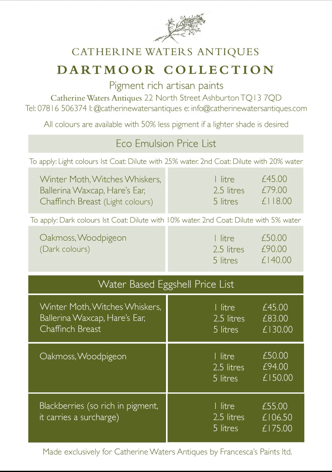 Price list